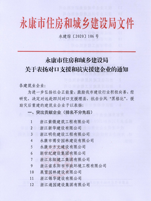 關(guān)于表?yè)P(yáng)對(duì)口支援和抗災(zāi)援建企業(yè)的通知