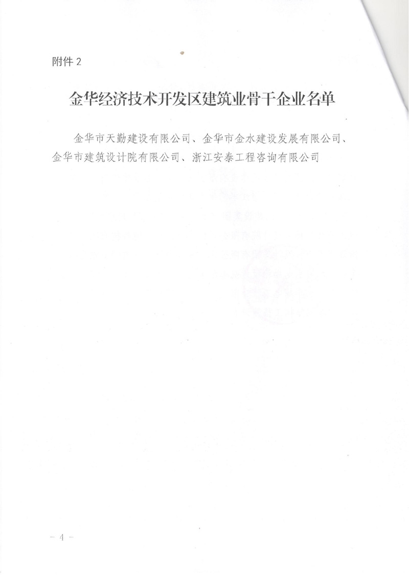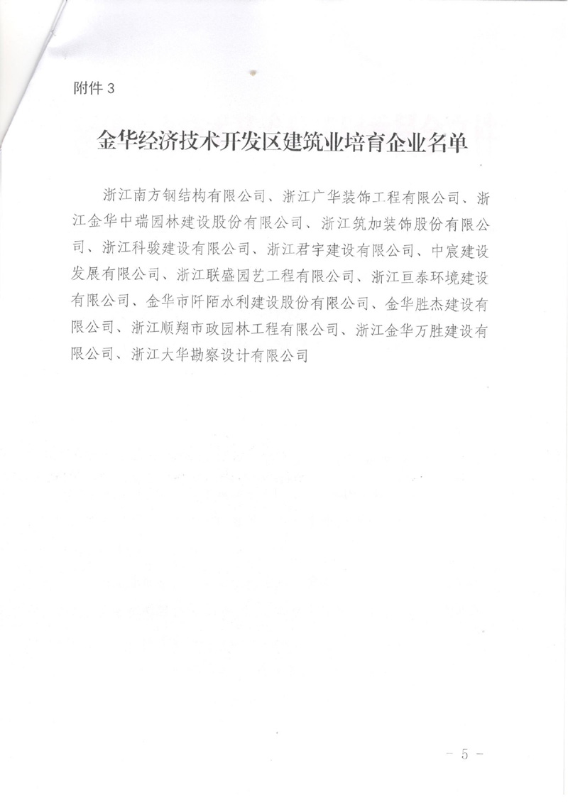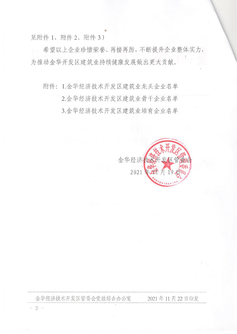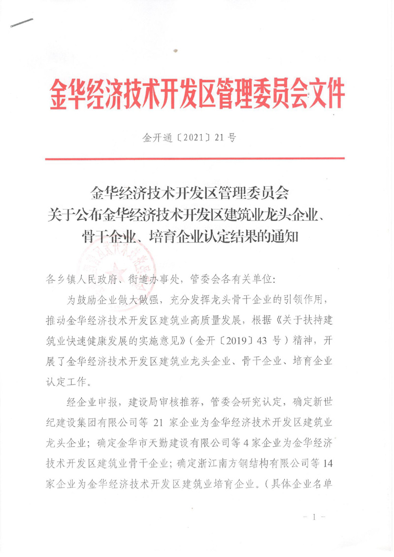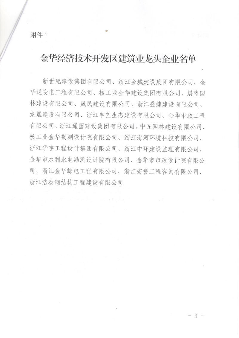 關于公布金華經濟技術開發區建筑業龍頭企業、骨干企業、培育企業認定結果的通知