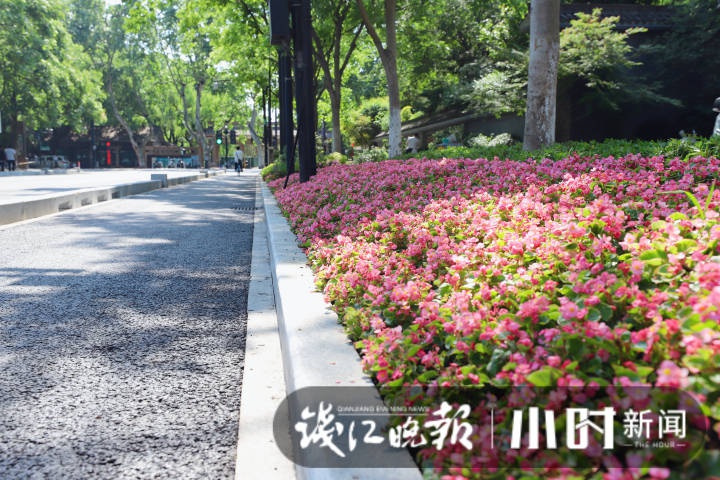 靠近南山路的區(qū)域,增設(shè)了景觀小品,如文化銅墻、文化銅磚等,以歷史為引線,結(jié)合西湖、河坊街歷史文化底蘊,打造展示城市歷史與街區(qū)風光的景觀長廊。沿線綠化提升同步建成,兼?zhèn)洹邦佒怠迸c“功能”。
