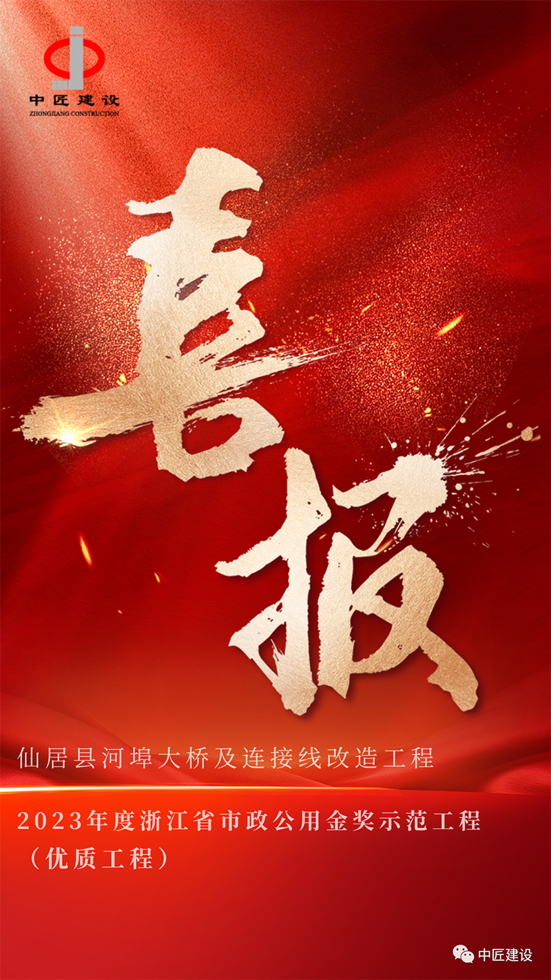 近日,中匠園林建設有限公司(以下簡稱“中匠建設”)承建的仙居縣河埠大橋及連接線改造工程,被浙江省市政行業協會高度認可,榮獲2023年度浙江省市政公用金獎示范工程(優質工程)榮譽。