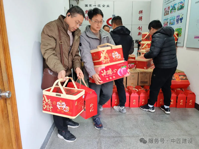 中匠建設(shè)衷心感謝每一位員工的辛勤工作與無私奉獻(xiàn)。是你們的努力,鑄就了公司的輝煌;是你們的笑容,點(diǎn)亮了公司的每一個(gè)角落。愿這份年貨能帶給你們及家人一個(gè)溫馨、快樂的春節(jié),讓我們攜手并進(jìn),共創(chuàng)更加美好的明天!
